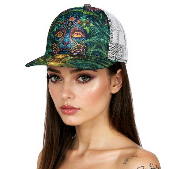 All-Over Print Black Buckle Flat-brimmed Mesh Cap With Box