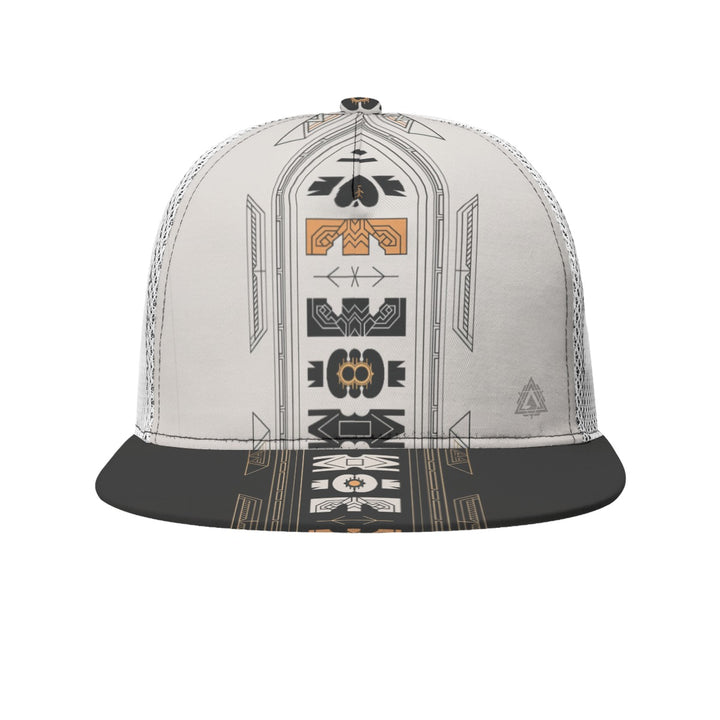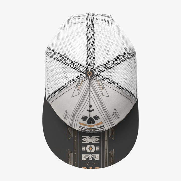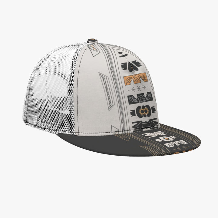 All-Over Print Black Buckle Flat-brimmed Mesh Cap With Box