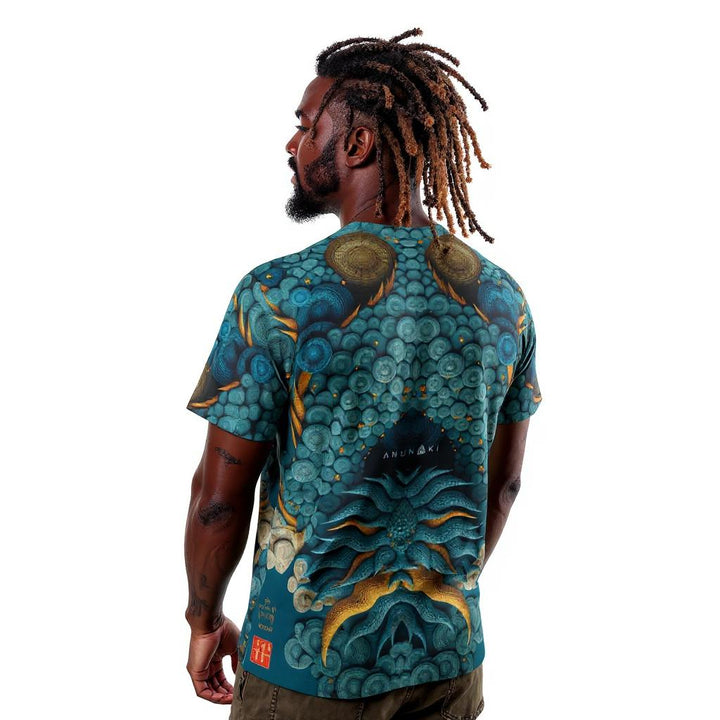 This hoodie is a striking piece of alternative fashion, embodying the themes of shamanism, post-apocalyptic fantasy, abstract art, and psychedelic aesthetics that Anunaki is known for